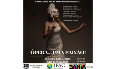Acompanhado por cantores de Salvador e Aracaju, o tenor italiano Sabino Martemucci organiza a terceira edição do recital de canto lírico no Museu de Arte da...
