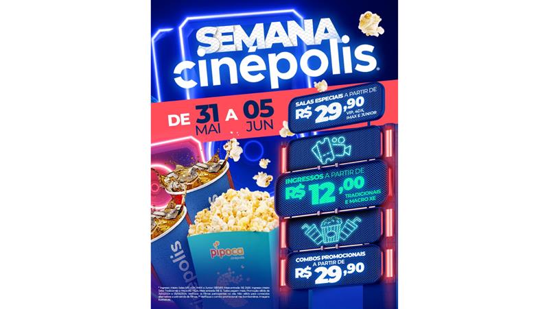 Para celebrar a magia do cinema nas telonas, a Cinépolis acaba de anunciar a “Semana Cinépolis”, que acontece entre os dias 31 de maio e 5 de junho. Durante essa semana especial, os clientes terão a oportunidade de aproveitar preços promocionais em ingressos e na bombonière em todas as unidades da rede.